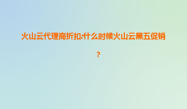 2025-07-22火山云黑五促销来袭:抓住年度最大优惠,尽享代理商专属折扣 一、火山云黑五促销时间节点 每年11月的第四个星期五是全球购物狂欢节“黑色星期五”,火山云作为国内领先的云计算服务商,...
