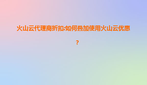2025-07-22火山云代理商折扣:如何叠加使用火山云优惠? 一、火山云的核心优势 在深入探讨优惠叠加策略前,首先需要了解火山云作为云计算服务商的核心竞争力: 高性能计算架构:采...