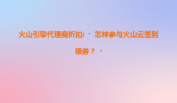 2025-07-20火山引擎代理商折扣:如何参与火山云签到领券? 一、火山云的核心优势 火山云是字节跳动旗下火山引擎推出的云计算服务品牌,凭借以下优势成为企业数字化转型的强力助手:...