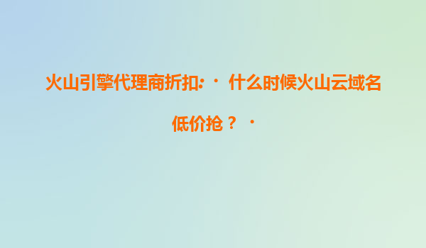 火山云域名低价抢活动时间解析 对于企业用户和个人开发者而言,域名是数字化转型的第一步。近期火山云推出的代理商折扣活动,让众多用户期待其域名产品的低价抢购时机。根据官方信息,火山云通常会在电商大促节点(...
