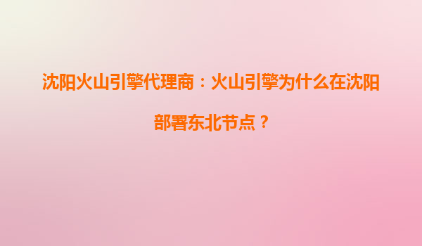 2025-07-20沈阳火山引擎代理商解读:火山引擎为什么在沈阳部署东北节点? 一、抢占东北数字经济的战略高地 近年来,东北地区在国家"数字中国"和"新基建"政策推动下,数字...