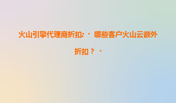2025-07-20火山引擎代理商折扣政策:哪些客户享有火山云额外优惠? 一、火山云的核心优势与市场需求 火山云作为字节跳动旗下的云计算服务平台,凭借全球分布式基础设施、高性能计算能力和AI技术整合能力...