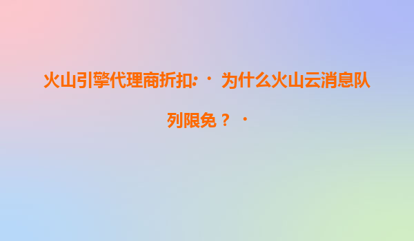 2025-07-20为什么火山云消息队列限免?解析火山引擎代理商折扣背后的战略布局 一、限免策略的底层逻辑:技术普惠与生态共建 火山引擎近期推出的消息队列(MQ)限免政策并非单纯的促销行为,而是其"技术...