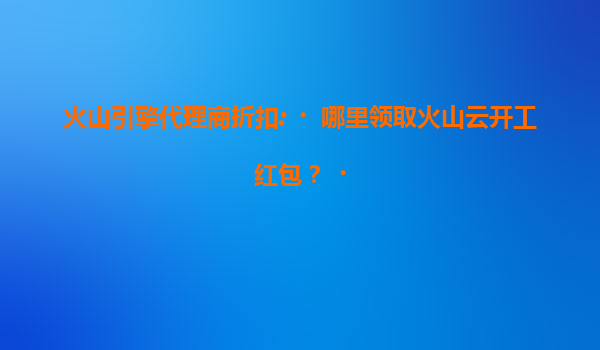如何领取火山云开工红包?详解代理商折扣与火山云核心优势 一、火山云开工红包领取指南 火山引擎(VolcanoEngine)作为字节跳动旗下的云计算服务品牌,每年会通过官方活动发放"开工红包"。以下是2023年...