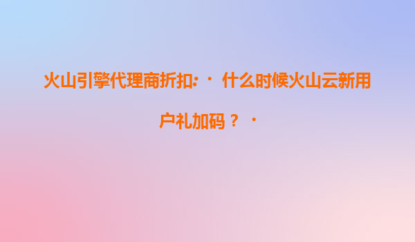 2025-07-20火山引擎代理商折扣:解读火山云新用户礼加码活动与平台优势 一、火山云新用户礼加码活动时间解析 针对“火山云新用户礼何时加码”的疑问,根据火山引擎官方政策及代理商动态,新用户优惠活动通常存在...