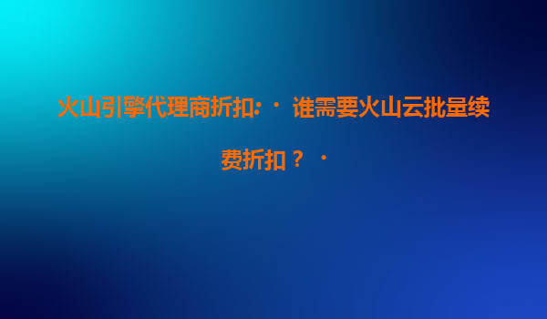 2025-07-19火山引擎代理商折扣:谁需要火山云批量续费折扣? 引言:火山云的核心优势与代理商价值 火山引擎作为字节跳动旗下的云计算服务品牌,凭借高性能计算资源、弹性扩展能力及全球化部署节点,已成...