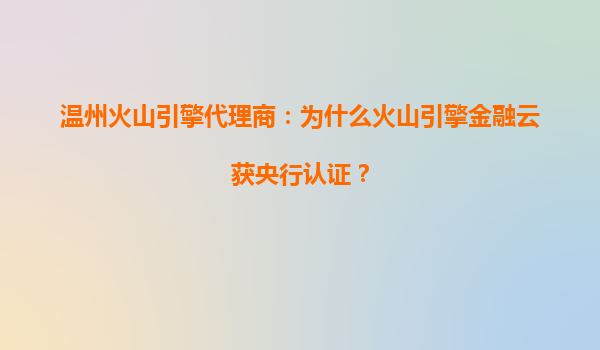 2025-07-19温州火山引擎代理商:解析火山引擎金融云获央行认证的深层优势 一、央行认证的背景与意义 中国人民银行(央行)对金融云服务的认证,是金融机构选择技术服务商...