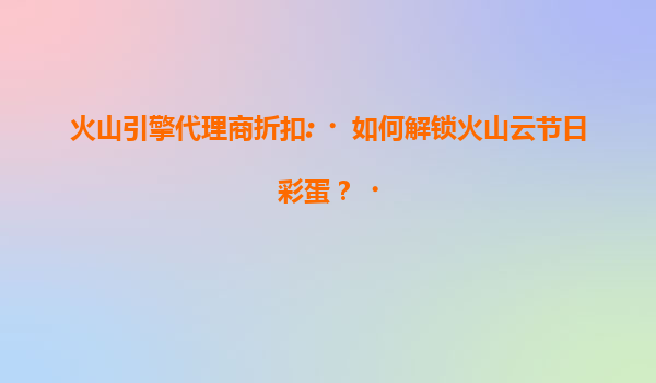 2025-07-19火山引擎代理商折扣:如何解锁火山云节日彩蛋? 一、火山云与代理商的双重优势 火山云作为字节跳动旗下的云计算服务平台,凭借强大的技术实力和丰富的资源储备...