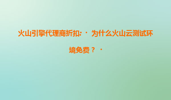 2025-07-19火山云测试环境为何免费?揭秘背后的商业策略 在众多云服务提供商中,火山引擎旗下火山云近期推出的测试环境免费政策引起广泛关注。许多企业和技术团队不禁好奇:为何火山云可以做到测试环境完全免费?这背...