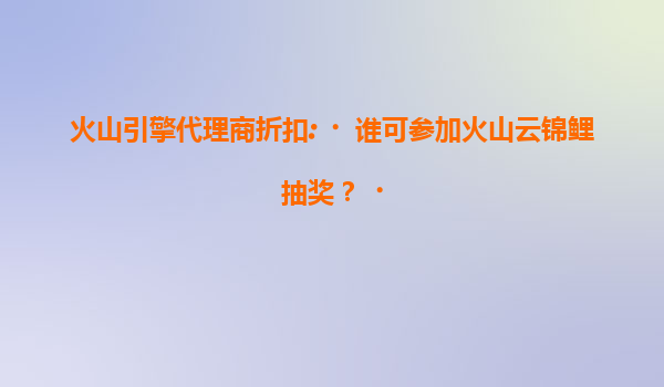 2025-07-19火山引擎代理商折扣:谁可参加火山云锦鲤抽奖? 一、火山引擎及火山云的核心优势 作为字节跳动旗下的企业级技术服务平台,火山引擎凭借以下优势成为数字化转型的重要推动力: 全球基础设施:覆盖5大洲的...