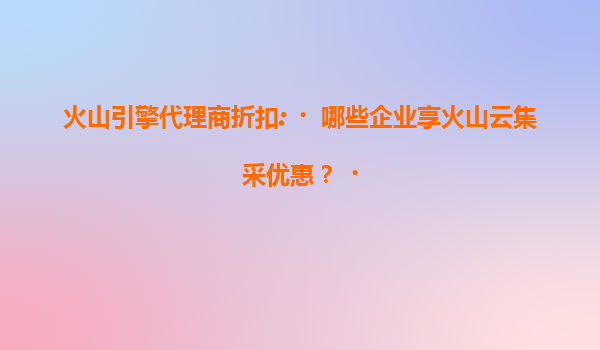 2025-07-19火山引擎代理商折扣解析:哪些企业可享火山云集采优惠? 一、火山云的核心优势 火山引擎作为字节跳动旗下的企业级技术服务平台,其火山云产品凭借以下优势成为...