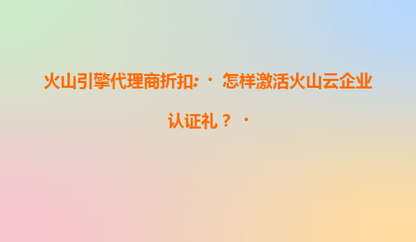 火山引擎代理商折扣:怎样激活火山云企业认证礼? 一、火山引擎代理商折扣政策 作为优质的云计算服务提供商,火山引擎(火山云)为代理商提供了极具竞争力的折扣政策。通过成为官方认证代理商,您可以享受如下...