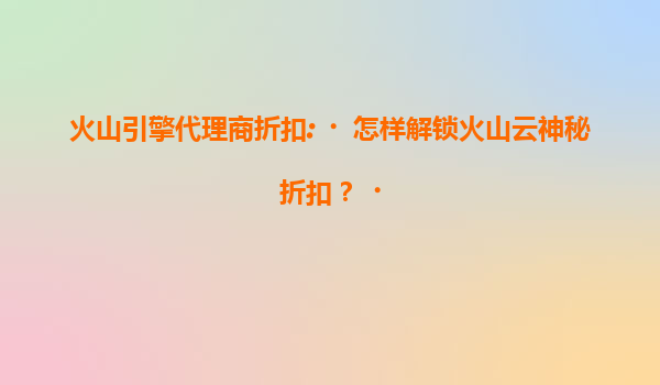 2025-07-17火山引擎代理商折扣:怎样解锁火山云神秘折扣? 一、火山云的核心优势 在选择云计算服务时,性价比和技术能力是关键。火山云作为字节跳动旗下的云计算品牌,凭...