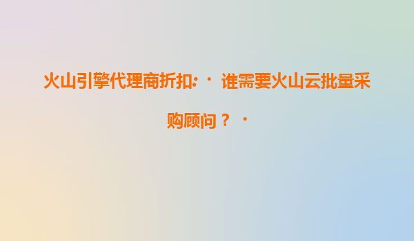 2025-07-17火山引擎代理商折扣:谁需要火山云批量采购顾问? 一、火山云的核心优势解析 作为字节跳动旗下的企业级技术服务平台,火山引擎凭借其独特的技术架构和资源整合能力,为企业客户提供了三大核心优势: ...