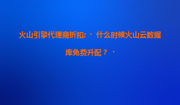 2025-07-16火山引擎代理商折扣:火山云数据库免费升配政策解析 一、火山云数据库的核心优势 火山云数据库作为火山引擎(字节跳动旗下云服务品牌)的核心产品之一,凭借以...