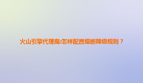 2025-07-16火山引擎代理商指南:如何配置熔断降级规则 一、熔断降级的核心价值 在高并发或依赖服务不稳定的场景中,熔断降级是保障系统稳定性的关键机制。通过主动拦截异...