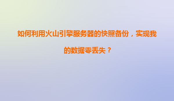 2025-11-05火山引擎快照备份的简介 在当今数字化时代,数据是企业的核心资产之一。数据丢失可能会导致不可估量的损失,从业务中断到客户信任的丧失。为了避免这种情况,企业需要一个可靠的备份解决方案。火山引擎服务器的快照...
