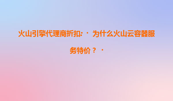 2025-07-16火山引擎代理商折扣:为什么火山云容器服务特价? 近年来,云计算市场竞争日益激烈,各大云服务提供商纷纷推出各种优惠活动吸引客户。作为字节跳动旗下的云计算品牌,火山引擎凭借其强大的技术实力和丰富的行业经...