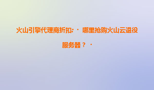 2025-07-16火山引擎代理商折扣:哪里抢购火山云退役服务器? 一、火山云退役服务器的价值与优势 随着云计算技术的快速发展,企业对于服务器的需求日益增长。然而,全新服务器的采购成本较高,对于...