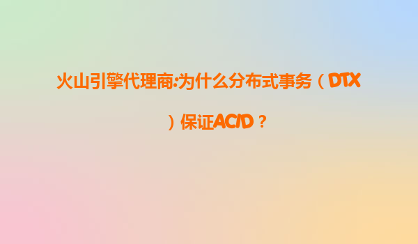 火山引擎代理商:为什么分布式事务(DTX)保证ACID? 引言 在当今的数字化时代,企业业务系统越来越复杂,数据分布在多个服务或数据库中。如何确保跨服务、跨数据库的事务一致性成为技术挑战。分布式事务(...