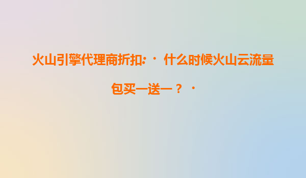 2025-07-16火山引擎代理商折扣:火山云流量包买一送一活动解析 一、火山云流量包买一送一活动时间 火山引擎作为字节跳动旗下的云计算服务品牌,会定期推出促销活动以回馈...