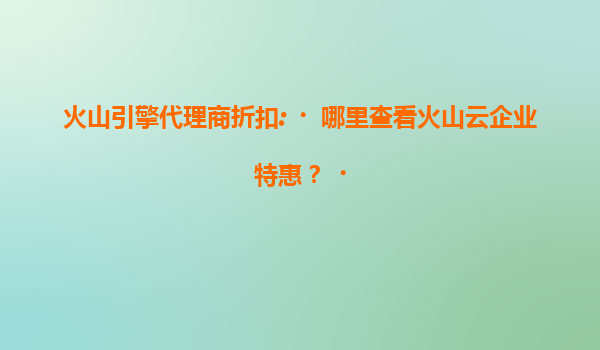 2025-07-16火山引擎代理商折扣:哪里查看火山云企业特惠? 一、火山云的核心优势 火山云作为字节跳动旗下的云计算服务品牌,凭借其强大的技术实力和丰富的行业经验,为企业用户提供了高效、稳定且安全的云服...