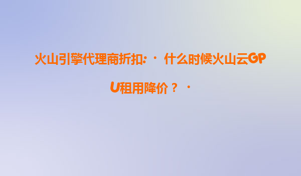 2025-07-16火山引擎代理商折扣:火山云GPU租用价格调整时机与优势解析 一、火山云GPU租用价格调整的核心因素 火山云GPU租用价格的变动通常受以下因素影响: 市场供需关系:当行业GPU资源供给增加或需求...