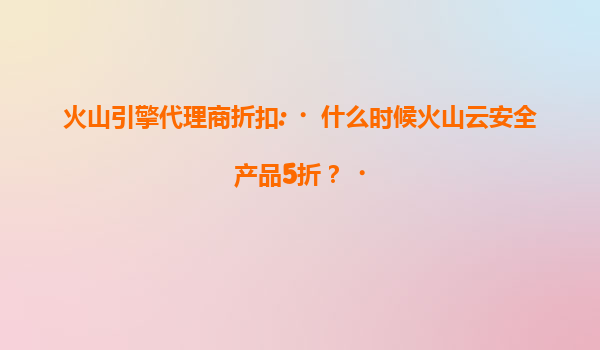 2025-07-16火山引擎代理商折扣:火山云安全产品5折优惠全解析 一、火山云安全产品5折活动时间 火山引擎作为字节跳动旗下的云计算服务平台,会定期通过代理商渠道推出限时折扣活动。目前,火山云安...