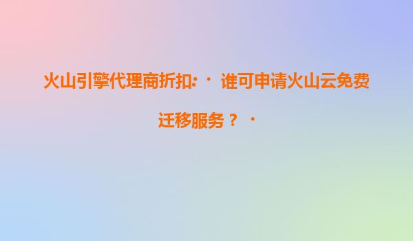 火山引擎代理商折扣:谁可申请火山云免费迁移服务? 一、火山云的核心优势 火山云作为字节跳动旗下的云计算品牌,依托全球领先的技术架构和丰富的行业经验,为...