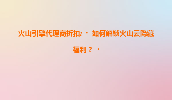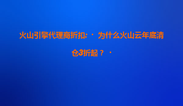 2025-07-15火山引擎代理商折扣:为什么火山云年底清仓3折起? 一、火山云年底清仓的背景与目的 每年年底,企业级云计算服务商通常会推出大幅折扣活动,火山云也不例外。今...