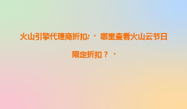2025-07-15火山云节日限定折扣活动介绍 作为国内领先的云计算服务商,火山云每年都会在重要节庆日推出限时特惠活动。代理商和用户可通过以下三种方式获取最新折扣信息:1)登录火山云官网"促销活动"专区;2)关注官方微信公...