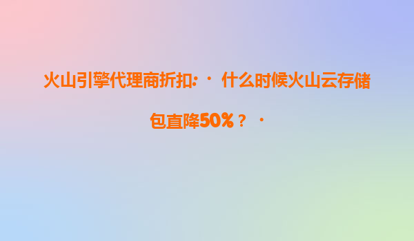 2025-07-15火山引擎代理商折扣揭秘:何时火山云存储包直降50%? 一、火山云存储包的限时折扣活动 近期,不少用户关注到火山引擎通过代理商渠道推出的存储包折扣活动,其中"直降50%"的优惠力度尤为...