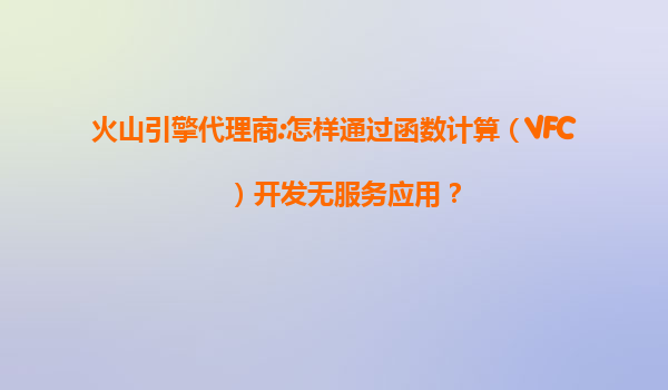 2025-07-13火山引擎代理商指南:通过函数计算(VFC)开发无服务应用 一、火山引擎函数计算(VFC)的核心优势 火山引擎的函数计算(VolcanoFunctionCompute,VFC)是面向无服务器架构的云原生服务,其核心优势...
