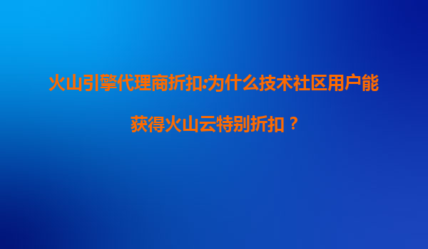 2025-07-13技术社区用户为何能获得火山云特别折扣? 火山云作为字节跳动旗下的云计算服务品牌,凭借其强大的技术实力和丰富的业务场景经验,正逐渐成为企业和开发者上云的首选。为了回馈广大技术社区用户,火山云特别推出代理...