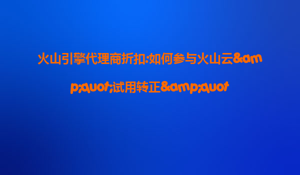 2025-07-13火山引擎代理商折扣:如何参与火山云"试用转正"奖励计划? 一、什么是火山云"试用转正"奖励计划? 火山云"试用转正"奖励计划是字节跳动旗下火山引擎为促进客户从试用阶段转化为正式付费用户推出的专项政策。...