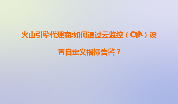 2025-07-12火山引擎代理商:如何通过云监控(CM)设置自定义指标告警 一、火山引擎云监控的核心价值 火山引擎的云监控(CloudMonitor,CM)服务为企业级用户提供了全栈式监控解决方案,其核心优势在于灵活的指标定义...