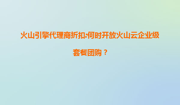 2025-07-12火山云企业级套餐团购即将开放,引领企业上云新潮流 近日,火山引擎官方表示将开放火山云企业级套餐团购活动,为企业用户带来更优惠的上云选择。这一消息引发了业界的广泛关注,众多企业纷纷翘首以盼。火山云作为云...