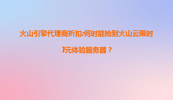 2025-07-12火山引擎代理商折扣:限时1元体验服务器抢购攻略 一、火山云限时1元体验活动的吸引力 火山云作为字节跳动旗下的云计算品牌,凭借其强大的技术背书和资源调配能...