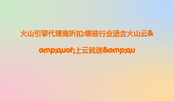 2025-07-12火山引擎代理商折扣:哪些行业适合火山云“上云就送”活动? 引言 随着数字化转型浪潮的推进,越来越多的企业意识到云计算在提升业务效率、降低运营成本方面的...