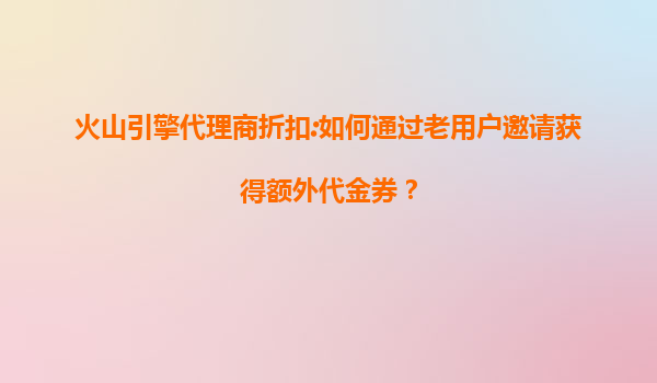2025-07-12火山引擎代理商折扣:如何通过老用户邀请获得额外代金券? 在当今竞争激烈的云计算市场中,企业用户越来越关注如何最大化利用资源并降低成本。火山引擎作为字节跳动旗下的云计算服务平台,凭借其强大的技术...