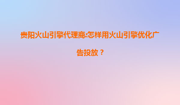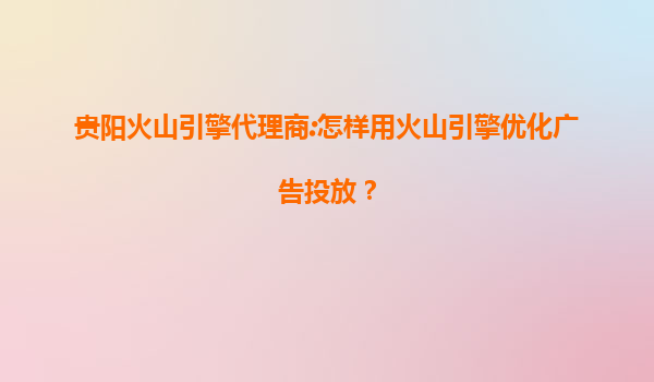 2025-07-12贵阳火山引擎代理商:如何用火山引擎优化广告投放 在数字化营销的时代,广告投放的精准性和效果成为了企业关注的重点。作为贵阳火山引擎的代理商,我们可以利用火山引擎的强大功能来优化广告投放,提升广告...
