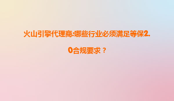 2025-07-12火山引擎代理商解析:哪些行业必须满足等保2.0合规要求? 引言 随着网络安全威胁日益加剧,国家对信息安全的重视程度不断提升,等级保护2.0(简称“等保2.0”)已成为各行业信息安全建设的强制性标准。作为企业数字...