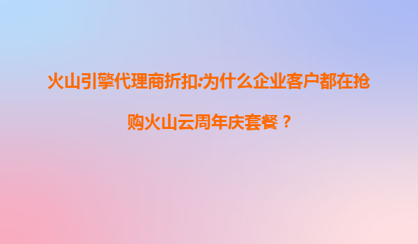 2025-07-12火山引擎代理商折扣:为什么企业客户都在抢购火山云周年庆套餐? 1.火山引擎周年庆促销:高性价比吸引企业客户 火山引擎作为字节跳动旗下的云计算服务品牌,凭借其技术实力和资源整合能力,吸引...