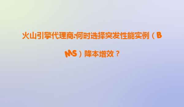 2025-07-12火山引擎代理商:何时选择突发性能实例(BMS)降本增效? 一、什么是突发性能实例(BMS)? 突发性能实例(BurstablePerformanceInstance,简称BMS)是云计算服务中的一种特殊实例类型,其特点是利用CPU...