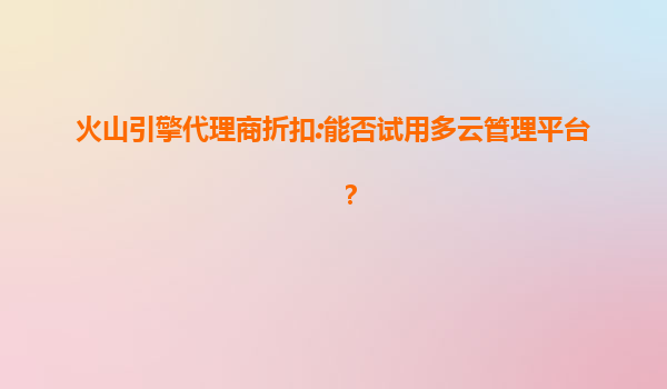 2025-07-11火山引擎代理商折扣:多云管理平台免费试用开启企业上云新体验 火山引擎多云管理平台的灵活试用政策 作为数字化转型升级的重要工具,火山引擎多云管理平台面向企业用户提供了灵活的试用政策。通过官方...