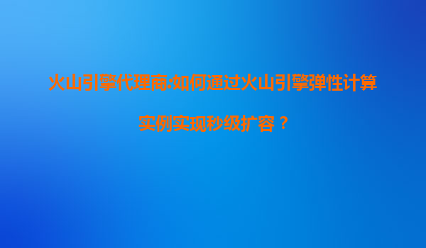 2025-07-11火山引擎代理商:如何通过火山引擎弹性计算实例实现秒级扩容? 一、火山引擎弹性计算的核心优势 作为字节跳动旗下的云计算服务品牌,火山引擎弹性计算实例(ECS)凭借以下核心优势,成为企业应对突发流量和...