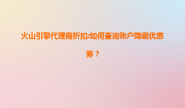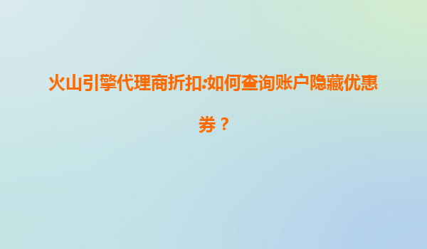 2025-07-11火山引擎代理商折扣:如何查询账户隐藏优惠券? 一、火山引擎的核心优势 作为字节跳动旗下的企业级技术服务品牌,火山引擎凭借以下优势成为企业数字化转型的首选: ...