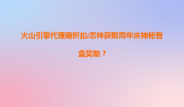 2025-07-10火山云代理商周年庆:解锁神秘盲盒奖励的完美攻略 在火山云代理商周年庆的热烈氛围中,众多合作伙伴翘首以盼的"神秘盲盒奖励"活动正式上线!作为火山引擎生态体系的重要一环,此次活动不仅为代理商带来丰厚福利,更...