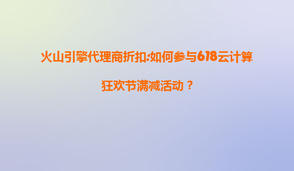 2025-07-10火山引擎618云计算狂欢节:代理商折扣与满减攻略 活动背景:云计算盛宴不容错过 每年一度的618购物狂欢节不仅是消费品的促销盛会,更是企业级用户优化IT成本的最佳时机。火山引擎作为字节跳动旗下的云计...