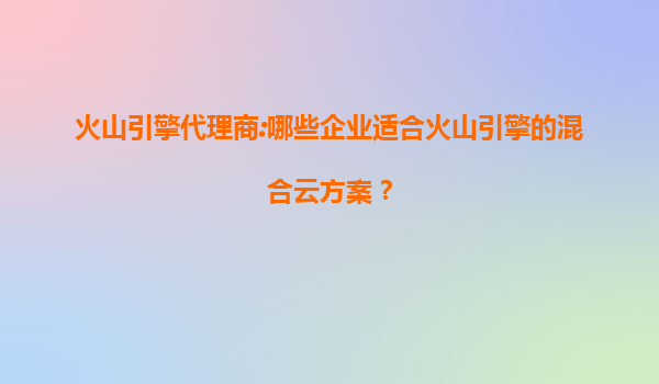 2025-07-09火山引擎代理商:哪些企业适合火山引擎的混合云方案? 一、为什么选择火山引擎混合云? 随着数字化转型的深入,企业对云计算的需求不再局限于单一的公有云或私有云模式,混合云因其灵活...